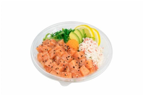 Cooked sushi rice (water, white rice, sugar, grain vinegar, salt, rice vinegar, citric acid, brown sugar); atlantic salmon*, lettuce, imitation crab salad (imitation crab [surimi {pollock, sugar, sorbitol, sodium tripolyphosphate, tetrasodium pyrophosphate}, water, modified tapioca starch, sugar, sweet cooking rice wine {rice wine, glutinous starch syrup, water, ethyl alcohol, salt, disodium succinate, disodium guanylate & disodium inosinate}, contains less than 2% of salt, sorbitol, tapioca starch, potato starch, soybean oil, artificial crab flavor, crab extract powder, glycine, dextrin, disodium succinate, hydrolyzed soy protein, dl-alanine, disodium inosinate & disodium guanylate, concentrated crab extract, crab flavor, xanthan gum, titanium dioxide {color}, cochineal extract, paprika extract], mayonnaise [soybean oil, water, whole eggs and egg yolks, vinegar, salt, sugar, lemon juice, calcium disodium edta used to protect quality, natural flavors]); poke sauce (sesame oil, water, canola oil, sugar, garlic puree [garlic, water], salt, soy sauce [water, wheat, soybeans, salt], xanthan gum, kelp extract powder [maltodextrin, kombu extract, salt], yeast extract); avocado (avocado, lime juice, salt); seasoned seaweed (seaweed, agar, sugar, water, soy sauce [water, soybean, wheat, salt, sugar, alcohol], mirin [glutinous rice, rice, fructose, vinegar, salt], rice vinegar, sesame seeds, black fungus, chili pepper, sesame oil, salt, sorbitol powder, skipjack tuna extract, kelp, calcium lactate, blue 1, yellow 5, rock sugar); masago* (capelin roe, water, rice vinegar, sweet cooking rice wine [glutinous rice, rice, fructose, vinegar, salt], rice wine, salt, sorbitol powder, yellow 5, yellow 6); sesame seeds.