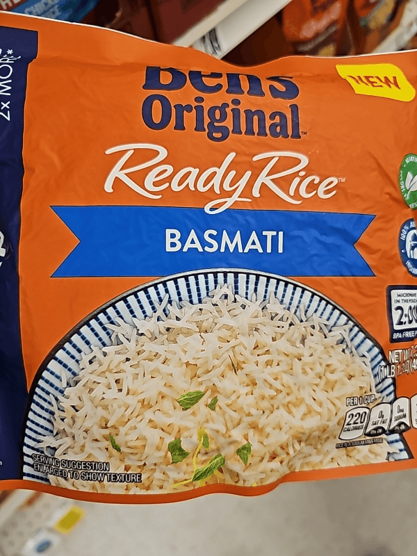 Water, basmati rice; less than 2% of: canola oil and/or sunflower oil†, soy lecithin. †adds a trivial amount of saturated fat.