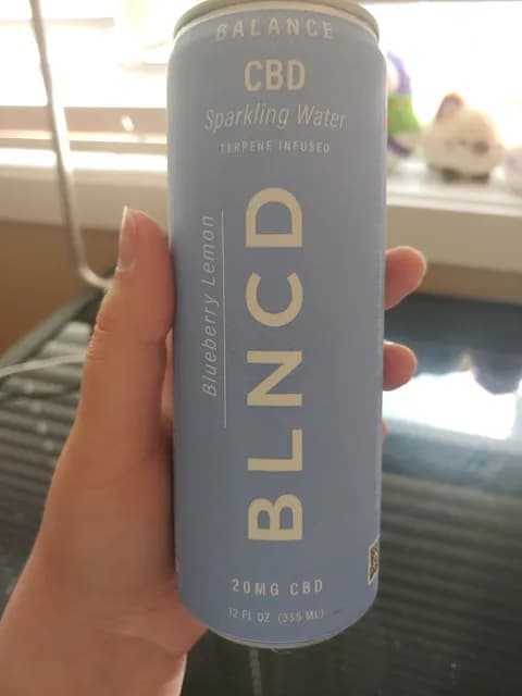 Carbonated reverse osmosis water, water soluble cbd, natural blueberry flavor, lemon extract, blncd balance terpene blend (beta-caryophyllene, limonene, humulene), non-gmo soy lecithin, ascorbic acid (vitamin c)