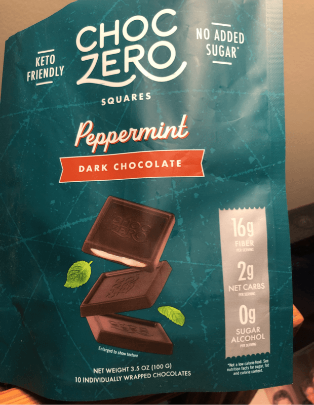Dark chocolate (unsweetened chocolate, cocoa butter), non-gmo resistant dextrin, palm oil, sunflower lecithin, natural peppermint flavor, glycerol, monk fruit extract.
