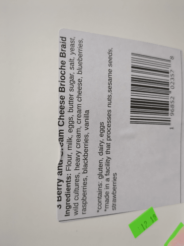 Flour, milk, eggs, butter sugar, salt, yeast, wild cultures, heavy cream, cream cheese, blueberries, raspberries, blackberries, vanilla