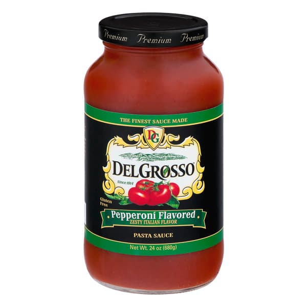 Tomato puree (water, tomato paste), fresh onions, pepperoni (pork and beef, salt, 2% or less water, dextrose, natural spices, oleoresin of paprika, lactic acid starter culture, garlic powder, sodium nitrate, bha, bht, citric acid), sugar, salt, fresh celery, olive oil, pecorino romano cheese (pasteurized sheep's milk, salt, cheese culture, enzymes), green peppers, spices, garlic and lemon juice.