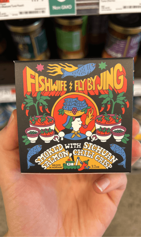 Atlantic salmon* (fish), fly by jing chili crisp (non-gmo sichuan rapeseed oil, non-gmo soybean oil, dried chili pepper, preserved black bean, garlic, sesame oil, salt, shallots, ginger, mushroom powder, sichuan pepper, seaweed powder, spices), dark brown sugar, salt, garlic salt (sea salt, garlic salt, modified corn starch, sugar, parsley, natural flavor and extractives of carrot) *fair trade certified by fair trade usa