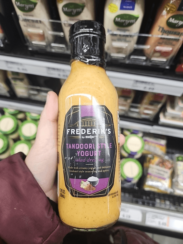 Vegetable oil (canola and/or soybean oil), water, nonfat yogurt (cultured skim milk, corn starch, tapioca starch, carrageenan, locust bean gum, sugar, extra virgin olive oil, distilled vinegar, less than 2% of white wine vinegar, salt, paprika, spices, orange juice concentrate, turmeric, seasoning blend (maltodextrin, whey powder, skim milk powder, modified corn starch, butter extractives, natural flavor), xanthan gum, acacia gum, dried garlic, dried ginger, lemon juice concentrate, dried onion, lactic acid.