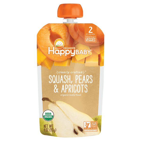 Organic butternut squash puree, organic pear puree, organic apricot puree, less than 1.5% of: organic lemon juice concentrate, ascorbic acid (vitamin c) to preserve freshness.