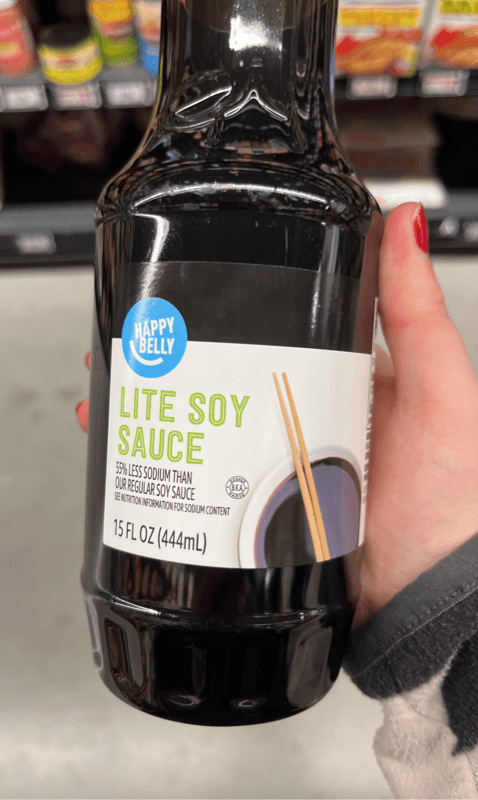 Contains: soy. lite soy sauce: 450mg sodium per serving
