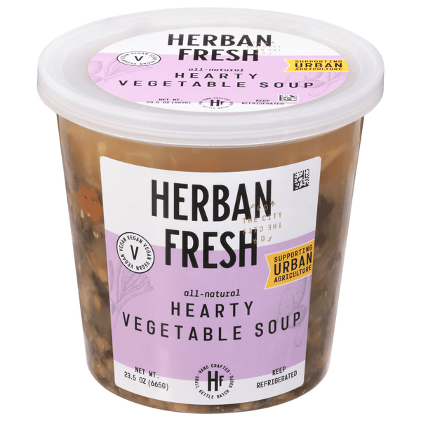Vegetable stock (water, sea salt, onion powder, maltodextrin (non-gmo), dextrose (non-gmo), yeast extract [yeast extract, salt], carrot powder, celery seed, white pepper, turmeric), tomato (vine-ripened tomatoes, tomato juice, salt, calcium chloride, citric acid), carrot, sweet potato, onion, cabbage, roasted corn (non-gmo), mushroom, red lentils, spinach, broccoli, leeks, celery, corn starch (non-gmo), olive oil, parsley, garlic, basil, cane sugar, lemon juice concentrate, yeast extract (yeast extract, salt), spices, caramel color (non-gmo), nisin.