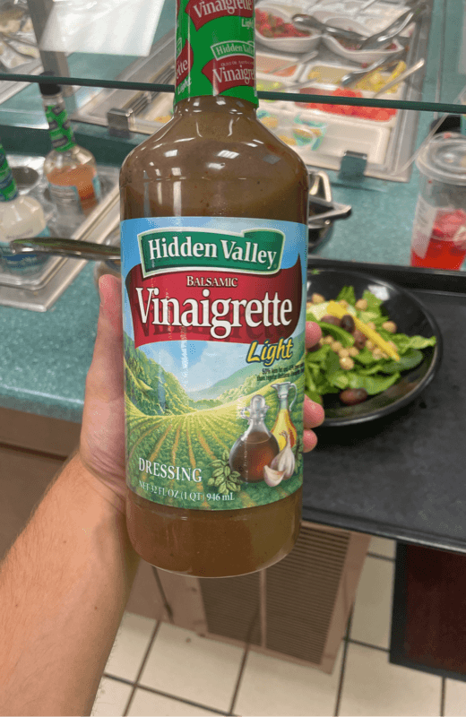 Water, balsamic vinegar, soybean oil, red wine vinegar, sugar, olive pomace oil, salt, contains less than 2% of distilled vinegar, xanthan gum, spices, garlic*, mustard seed, onion*, red bell pepper*, polysorbate 60, calcium disodium edta added to protect flavor. *dehydrated