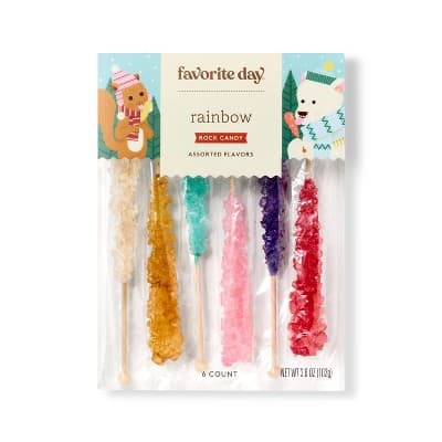 Sugar, artificial color (blue 1, red 3, beta-carotene, carmine, turmeric, caramel color), artificial flavors, citric acid.