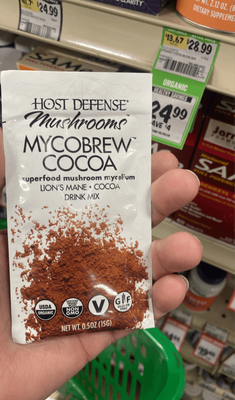 Cocoa†⋄, coconut sugar†⋄, lion's mane (hericium erinaceus) mycelium†/ fermented brown rice biomass†, sea salt. †certified organic ⋄fair trade certified by fair trade usa 95% fair trade certified ingredients