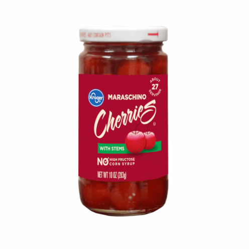 Cherries, water, corn syrup, sugar, malic acid, citric acid, natural and artificial flavor, potassium sorbate and sodium benzoate (preservatives), red 40, sulfur dioxide (preservative).