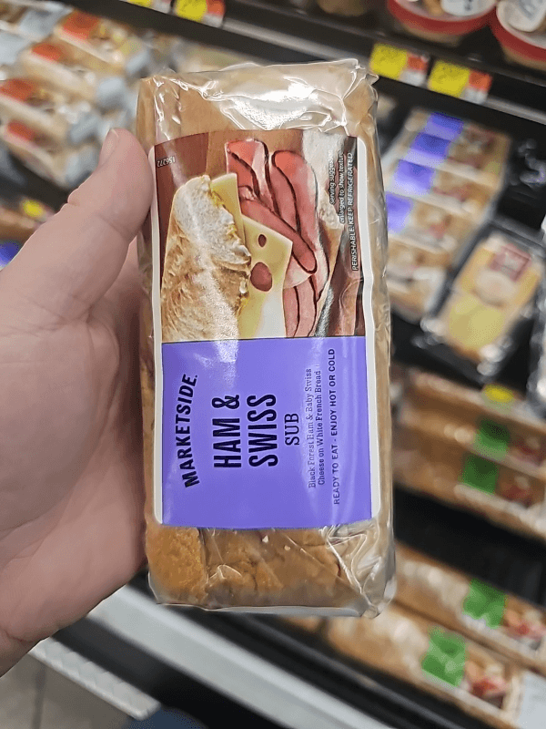 Uncured ham no nitrate or nitrite added except for that naturally occurring in celery juice contain up to 15% solution: water, less than 2% of salt, vinegar, celery juice powder, sodium phosphates, natural flavor. White french sub roll (enriched flour, niacin, reduced iron, thiamin mononitrate, riboflavin, folic acid, malted barley flour, ascorbic acid added as a dough conditioner), water, sugar, less than 2% of yeast, soy oil, salt, mono & diglycerides, calcium carbonate, enzymes (amylase, lipase, xylanase, protease), calcium propionate (preservative), ascorbic acid, maltodextrin, sunflower oil, tocopherols (preservative), natural flavor, wheat starch, dextrin, calcium sulfate, baby swiss cheese: cultured pasteurized milk, salt, enzymes.