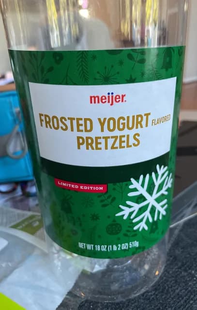 Yogurt flavored coating (sugar, palm kernel oil and/or palm oil, nonfat dry milk, whey powder, nonfat yogurt powder [cultured whey, nonfat milk], titanium dioxide [color], soy lecithin [emulsifier], lactic acid, natural vanilla flavor), pretzels (enriched wheat flour [wheat flour, niacin, reduced iron, thiamine mononitrate, riboflavin, folic acid], malt, salt, soybean oil), less than 1% of artificial coloring (includes yellow 5 lake, blue 1 lake, red 40 lake, blue 2 lake).