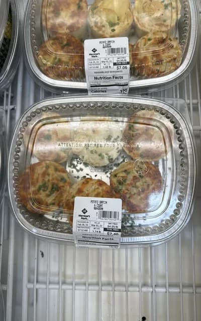 Potatoes (potatoes, salt), part-skim milk, cream, pasteurized process cheese product (emmentaler cheese [cultured pasteurized milk, salt, enzymes], buttermilk, salt, xanthan gum), grated mozzarella cheese (cultured pasteurized milk, salt, enzymes, potato starch), potato starch, potato flakes, egg yolks, pasteurized process cheese powder (cultured pasteurized milk, salt, microbial rennet), salt, garlic powder, sunflower or rapeseed oil, black pepper, xanthan gum, turmeric oleoresin (color). Topped with chives.
