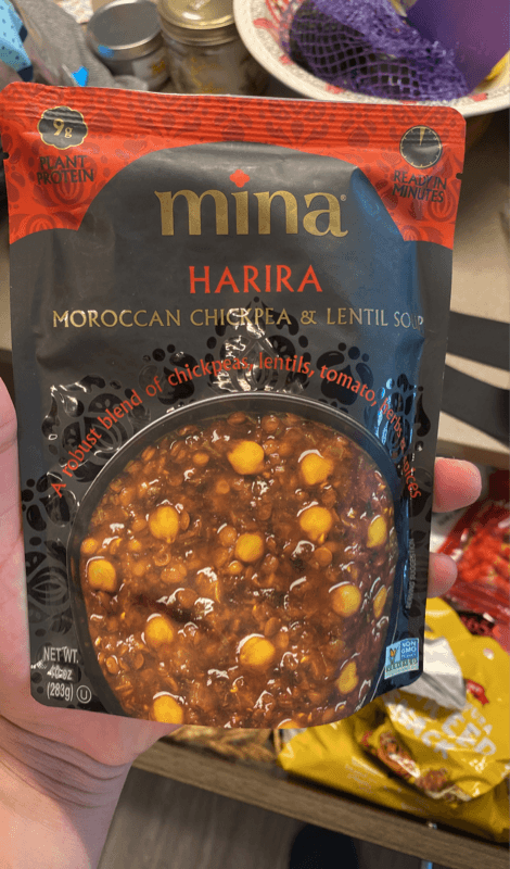 Water, tomatoes, green lentils, onion, cilantro, chickpeas, celery, parsley, extra virgin olive oil, sea salt, tapioca starch, turmeric, cinnamon, black pepper, ginger.