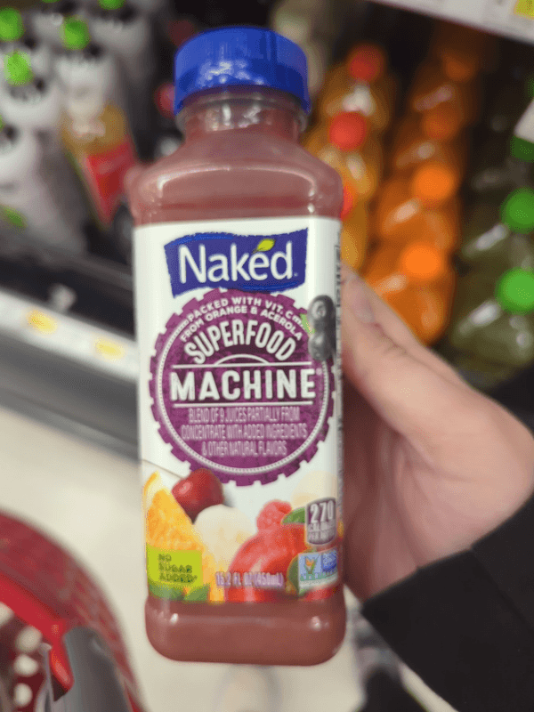 Apple juice from concentrate (water, apple juice concentrate), orange juice, banana puree, cherry puree, acai puree, acerola juice from concentrate (water, acerola juice concentrate), raspberry puree, flax seed powder, natural flavor, chokeberry juice from concentrate (water, chokeberry juice concentrate), elderberry juice from concentrate (water, elderberry juice concentrate), pyridoxine hydrochloride (vitamin b6), cyanocobalamin (vitamin b12).