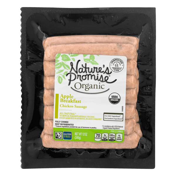 Organic skinless chicken, organic maple syrup, organic sugar, organic dried apples, organic apple juice concentrate, sea salt, organic cinnamon, organic nutmeg.