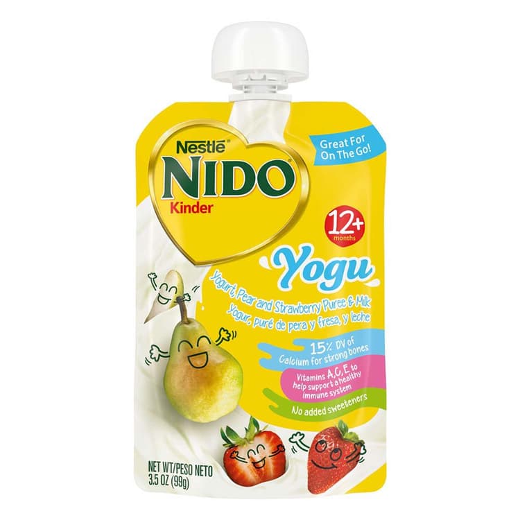 Cultured whole milk, pear puree (water, pear puree concentrate) nonfat milk, strawberry puree, water, tapioca starch, milkfat, lemon juice concentrate, citrus pectin, soy lecithin, vitamins and minerals: calcium phosphate, vitamin c (ascorbic acid), vitamin e (alpha tocopheryl acetate), iron (ferric pyrophosphate), zinc sulfate, vitamin a palmitate.