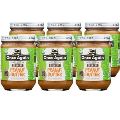 Dry roasted blanched organic peanuts, organic palm fruit oil, organic sugar, salt.