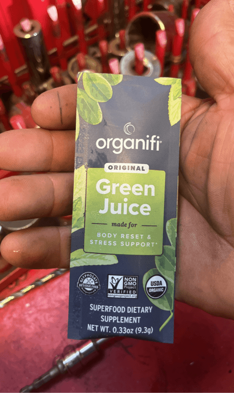 Organic prebiotic powder (from tapioca starch), organic natural orange flavor with other natural flavors, organic mint flavors with other natural flavors, organic luo han guo (monk fruit) extract, [organic wheat (grass) powder, organic wheat (grass) juice powder, organic moringa (leaf) powder, organic spirulina (whole plant) powder, organic chlorella (whole plant) powder, organic matcha green tea (leaf) powder], [organic coconut (fruit) water powder, organic ashwagandha (root) extract (ksm 66), organic lemon powder, organic red beet (root) powder, organic turmeric (root) extract].