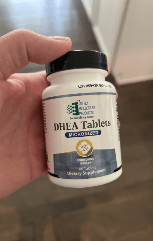 Isomalt, natural cane sugar, croscarmellose sodium, potassium bicarbonate, natural cherry flavor, sodium stearyl fumarate, stearic acid, silicon dioxide, and turmeric root, dhea (dehydroepiandrosterone).