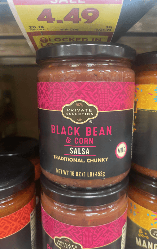 Tomato puree (water, tomato paste), fire roasted tomatoes in tomato juice, diced tomatoes in tomato juice, onion, roasted corn, black bean, white vinegar, roasted green bell peppers, salt, roasted garlic puree, roasted poblano puree (poblano peppers, water), cane sugar, dried garlic, dried onion, xanthan gum.