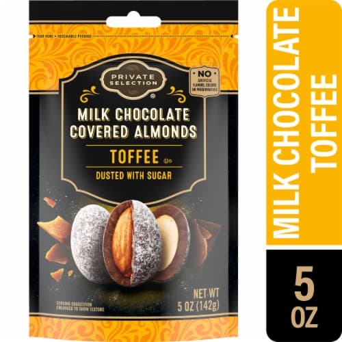 Milk chocolate (sugar, cocoa butter, unsweetened chocolate, whole milk powder, soy lecithin [an emulsifier], natural vanilla extract), almonds, sugar, salt.