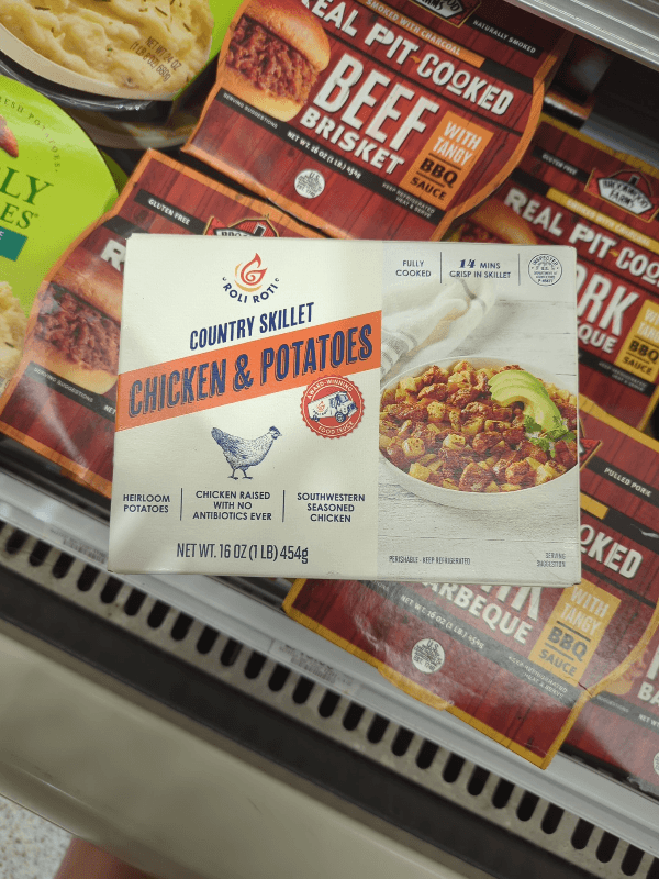 Potatoes, chicken, onion, fat from chicken broth (water, chicken, carrots), salt, spices (including chili pepper), tomato, garlic, sugar.