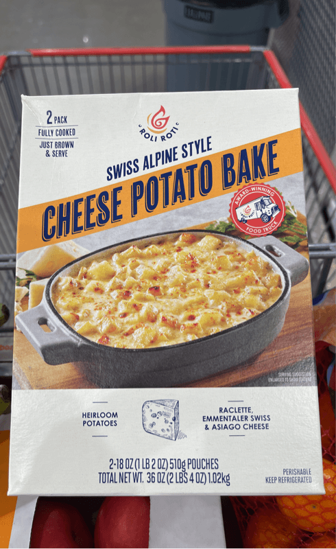 Potato, heavy cream, cheese blend (raclette (pasteurized part-skim cow's milk, cheese culture, salt, enzymes), asiago (pasteurized milk, cheese cultures, salt, enzymes), emmentaler (pasteurized cow's milk, salt, cheese cultures, enzymes), powdered cellulose, with natamycin, added to prevent caking), salt, spices.
