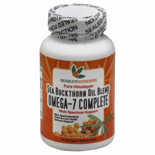 Organic sea buckthorn oil , organic sea buckthorn berry oil , palmitoleic acid ( omega 7 ) , oleic acid ( omega 9 ) , linoleic acid ( omega 6 ) , organic sea buckthorn seed oil , linolenic acid ( omega 3 ) , linoleic acid ( omega 6 ) , oleic acid ( omega 9 ) , vitamin e , other ingredients : kosher gelatin .