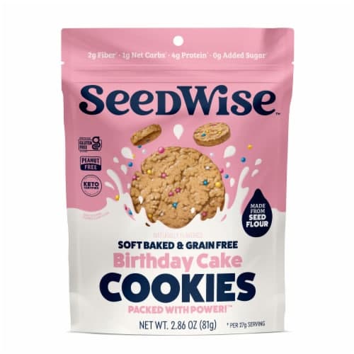 Seedwise mix (sunflower seed*, flax seed, pumpkin seed*), xylitol, palm oil (rspo certified sustainable), filtered water, sprinkles (sugar, water, corn starch, colors (turmeric oleoresin, beta carotene, spirulina extract, rice protein, annatto extract, red radish extract, red cabbage extract, rice protein concentrate, beet extract), natural flavors, carnauba wax, citric acid), glycerin, sea salt, sunflower and/or canola lecithin, leavening (baking soda, sodium acid pyrophosphate, corn starch, monocalcium phosphate), natural flavors, monk fruit juice concentrate. *partially de-oiled and/or defatte