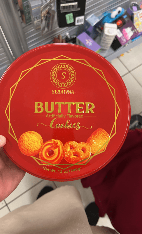 Wheat flour, sugar, vegetable shortening (inter-esterified palm oil), butter (cream, salt), invert sugar syrup, skim milk powder, corn flour, soy lecithin, baking powder (sodium bicarbonate, sodium aluminium sulphate, corn starch), artificial butter flavor.