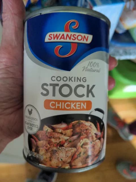 Chicken stock, contains less than 2% of: salt, mirepoix (carrots, celery, onions), cabbage, parsley.