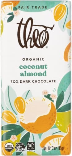 Dark chocolate* (cocoa beans*+, cane sugar*+, cocoa butter*+), coconut *+, almonds*. *organic +fair trade