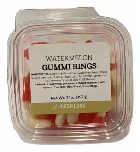 Corn syrup (from corn), sugar (from beets), water, gelatin, citric acid, artificial flavor, lactic acid, pectin (derived from fruit), titanium dioxide (color), fd&c red #40.