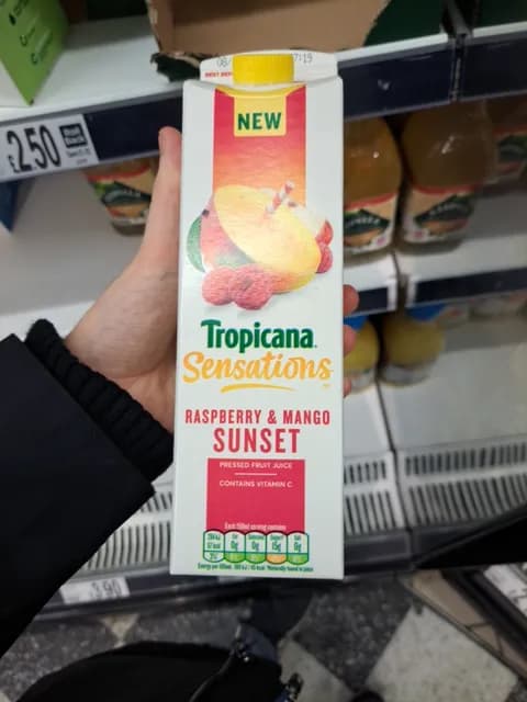 Apple juice (80%), mango puree (12%), raspberry puree (6%), elderberry juice, antioxidant (ascorbic acid). Not from concentrate
