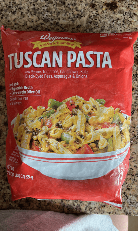 Cooked enriched whole wheat pasta (whole durum flour, wheat semolina, niacin, ferrous sulfate, thiamine mononitrate, riboflavin, folic acid), tomatoes, cauliflower, kale, black-eyed peas, asparagus, onions, seasoning (salt, tomato powder, modified food starch, paprika, onion powder, spices, sugar, yeast extract, garlic powder, dehydrated minced garlic, citric acid, natural flavor), canola oil.
